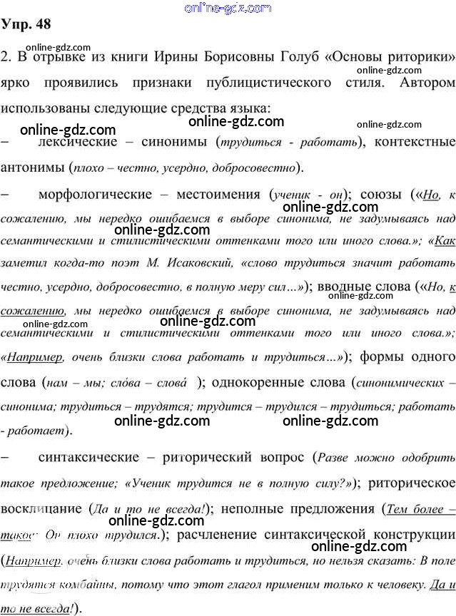 Готовые домашние задания по Русскому языку за 8 класс Учебник Быстрова, Кибирева Инновационная школа 2019 - Упражнения Часть 1 48