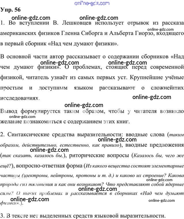Готовые домашние задания по Русскому языку за 8 класс Учебник Быстрова, Кибирева Инновационная школа 2019 - Упражнения Часть 1 56