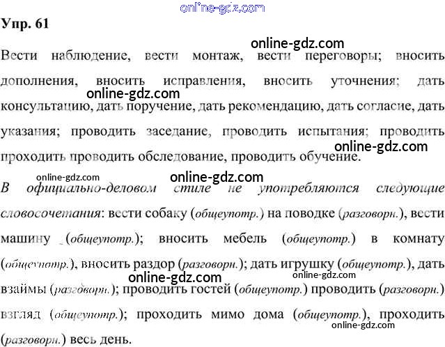 Готовые домашние задания по Русскому языку за 8 класс Учебник Быстрова, Кибирева Инновационная школа 2019 - Упражнения Часть 1 61
