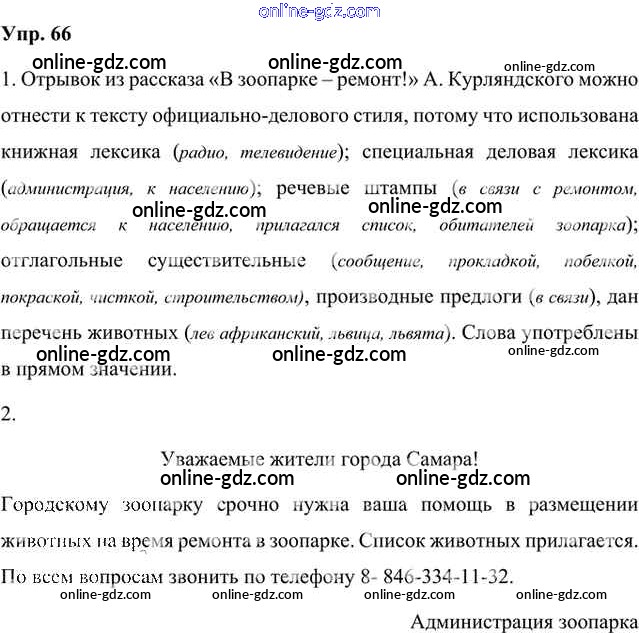 Готовые домашние задания по Русскому языку за 8 класс Учебник Быстрова, Кибирева Инновационная школа 2019 - Упражнения Часть 1 66