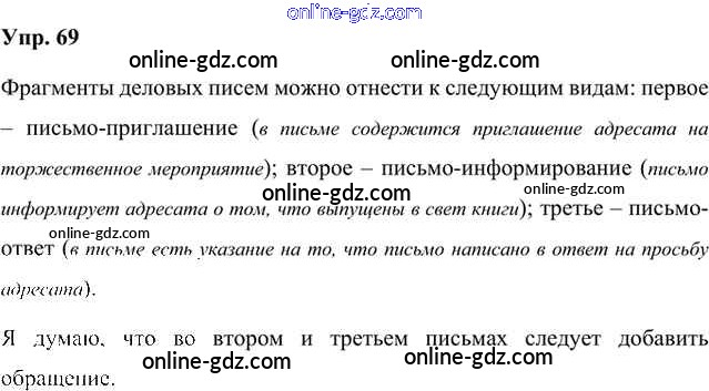 Готовые домашние задания по Русскому языку за 8 класс Учебник Быстрова, Кибирева Инновационная школа 2019 - Упражнения Часть 1 69