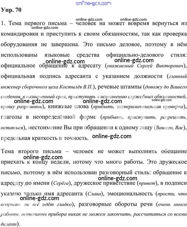 Готовые домашние задания по Русскому языку за 8 класс Учебник Быстрова, Кибирева Инновационная школа 2019 - Упражнения Часть 1 70