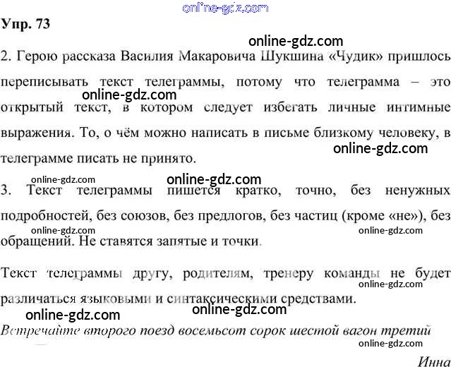 Готовые домашние задания по Русскому языку за 8 класс Учебник Быстрова, Кибирева Инновационная школа 2019 - Упражнения Часть 1 73