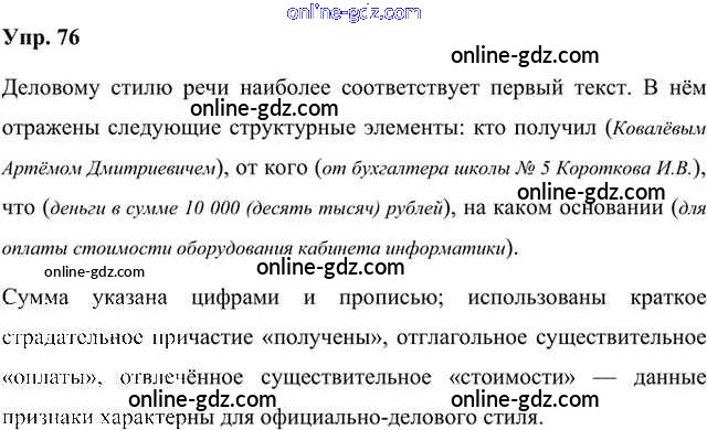Готовые домашние задания по Русскому языку за 8 класс Учебник Быстрова, Кибирева Инновационная школа 2019 - Упражнения Часть 1 76