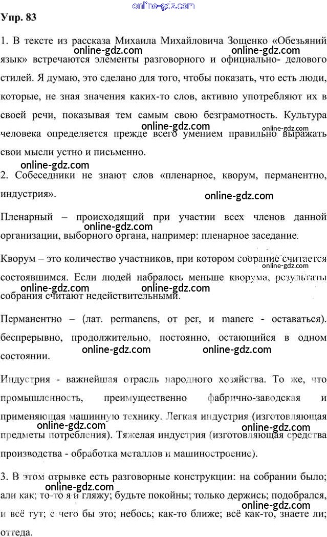 Готовые домашние задания по Русскому языку за 8 класс Учебник Быстрова, Кибирева Инновационная школа 2019 - Упражнения Часть 1 83