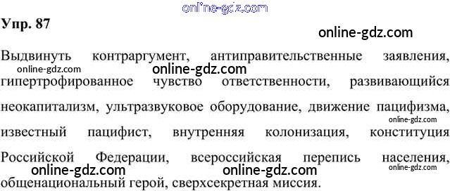 Готовые домашние задания по Русскому языку за 8 класс Учебник Быстрова, Кибирева Инновационная школа 2019 - Упражнения Часть 1 87