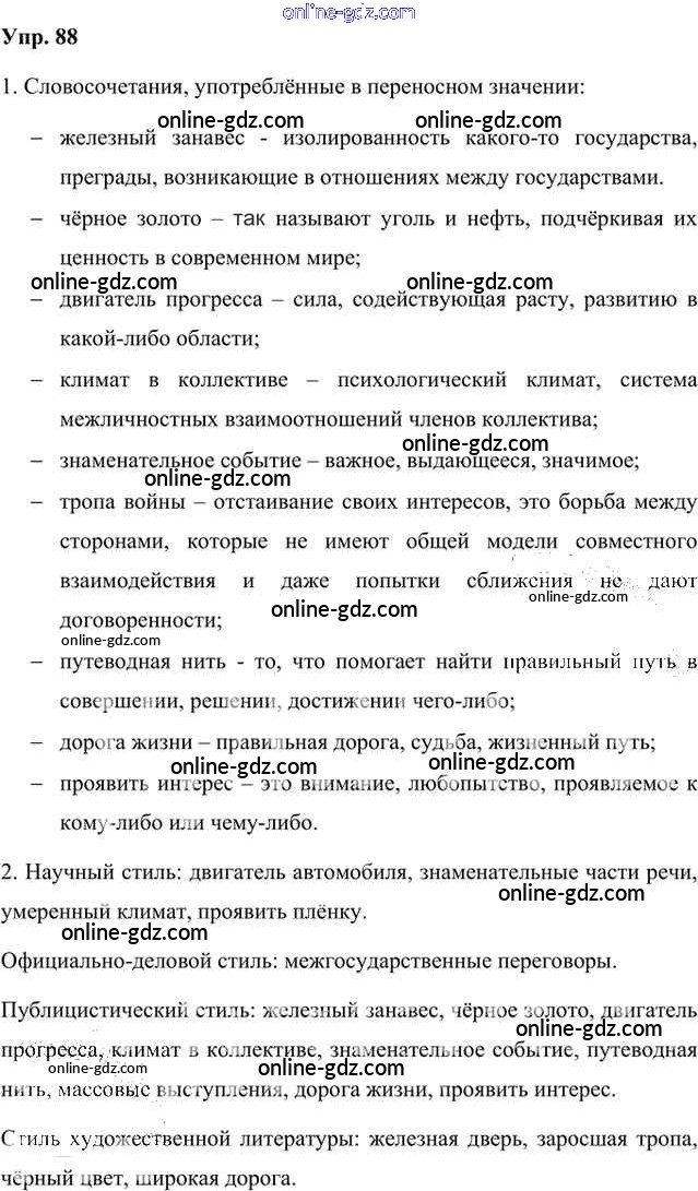 Готовые домашние задания по Русскому языку за 8 класс Учебник Быстрова, Кибирева Инновационная школа 2019 - Упражнения Часть 1 88