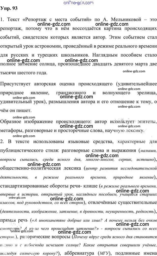Готовые домашние задания по Русскому языку за 8 класс Учебник Быстрова, Кибирева Инновационная школа 2019 - Упражнения Часть 1 93
