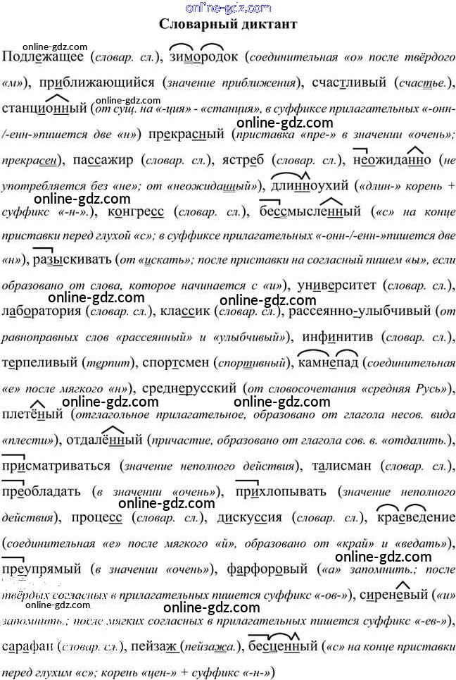 Готовые домашние задания по Русскому языку за 8 класс Учебник Быстрова, Кибирева Инновационная школа 2019 - Словарный диктант Часть 1 с.196
