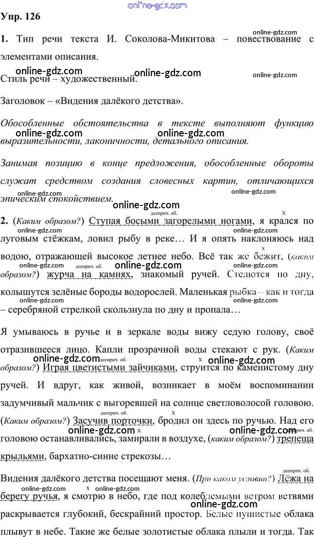 Готовые домашние задания по Русскому языку за 8 класс Учебник Быстрова, Кибирева Инновационная школа 2019 - Упражнения Часть 2 126