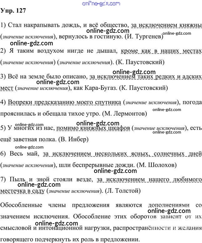 Готовые домашние задания по Русскому языку за 8 класс Учебник Быстрова, Кибирева Инновационная школа 2019 - Упражнения Часть 2 127