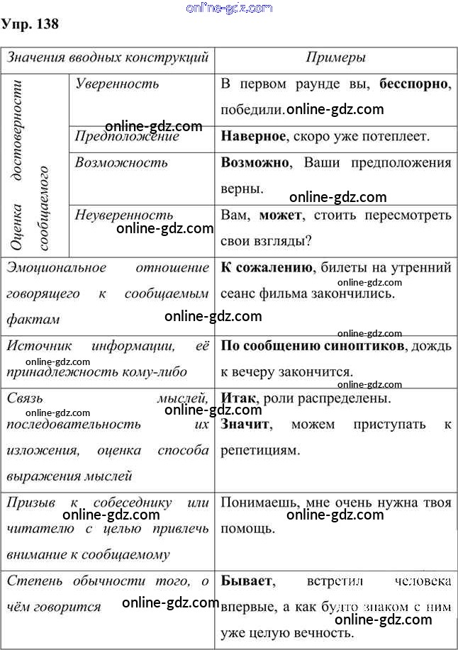 Готовые домашние задания по Русскому языку за 8 класс Учебник Быстрова, Кибирева Инновационная школа 2019 - Упражнения Часть 2 138