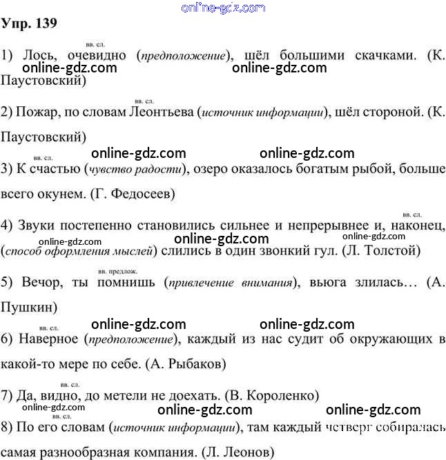 Готовые домашние задания по Русскому языку за 8 класс Учебник Быстрова, Кибирева Инновационная школа 2019 - Упражнения Часть 2 139