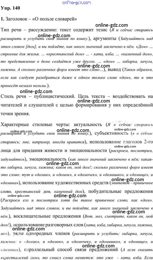 Готовые домашние задания по Русскому языку за 8 класс Учебник Быстрова, Кибирева Инновационная школа 2019 - Упражнения Часть 2 140