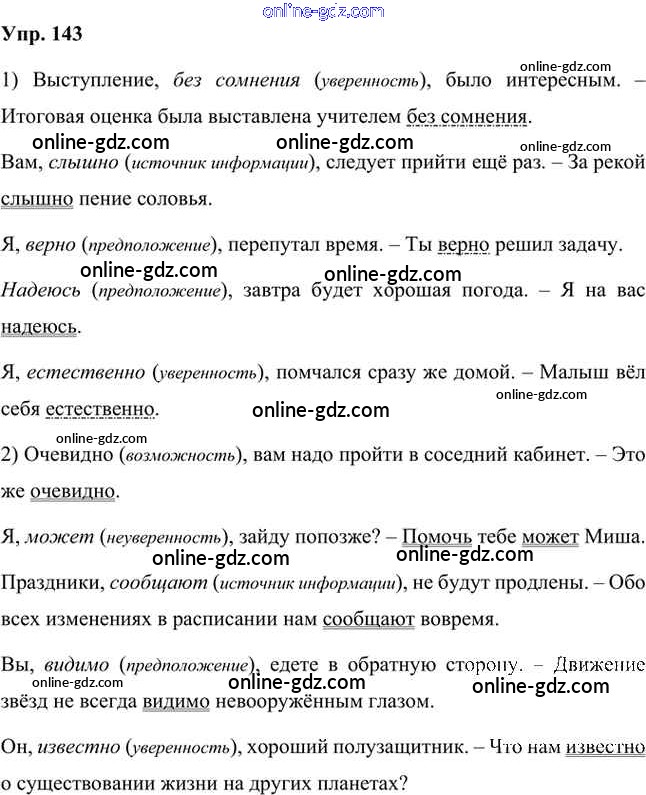 Готовые домашние задания по Русскому языку за 8 класс Учебник Быстрова, Кибирева Инновационная школа 2019 - Упражнения Часть 2 143