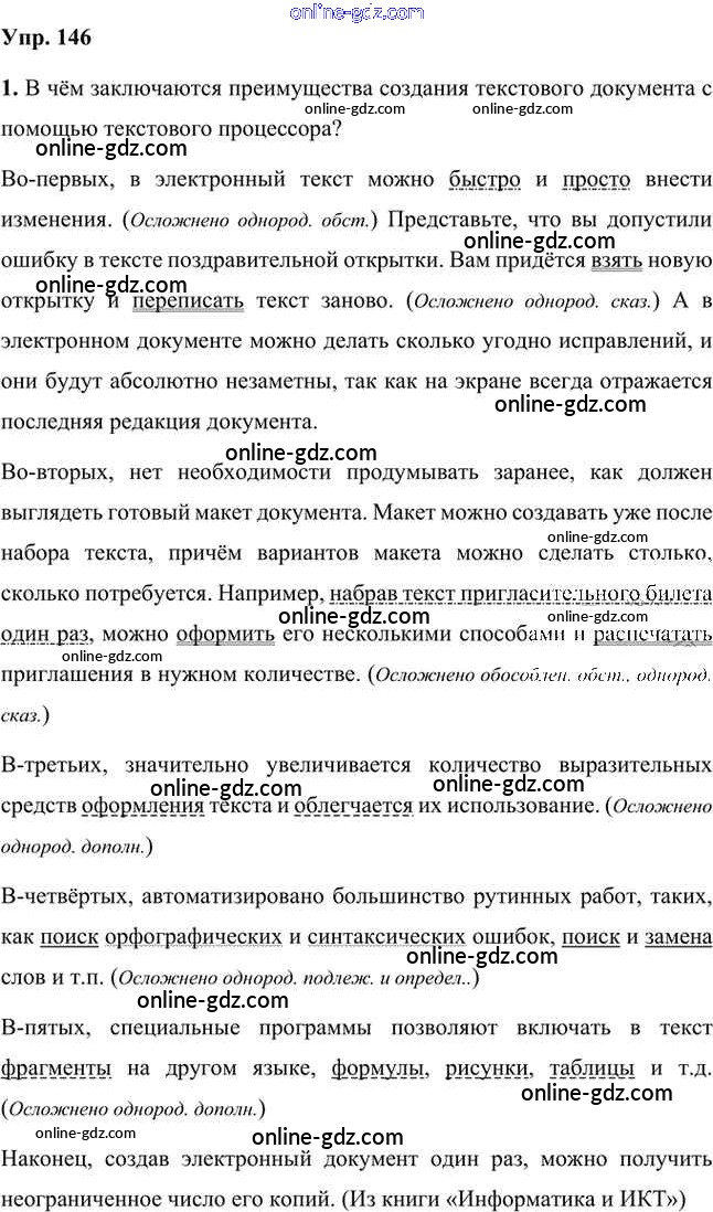 Готовые домашние задания по Русскому языку за 8 класс Учебник Быстрова, Кибирева Инновационная школа 2019 - Упражнения Часть 2 146