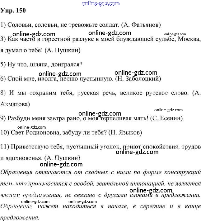 Готовые домашние задания по Русскому языку за 8 класс Учебник Быстрова, Кибирева Инновационная школа 2019 - Упражнения Часть 2 150