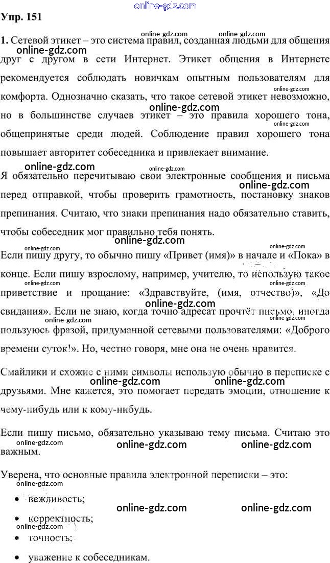 Готовые домашние задания по Русскому языку за 8 класс Учебник Быстрова, Кибирева Инновационная школа 2019 - Упражнения Часть 2 151