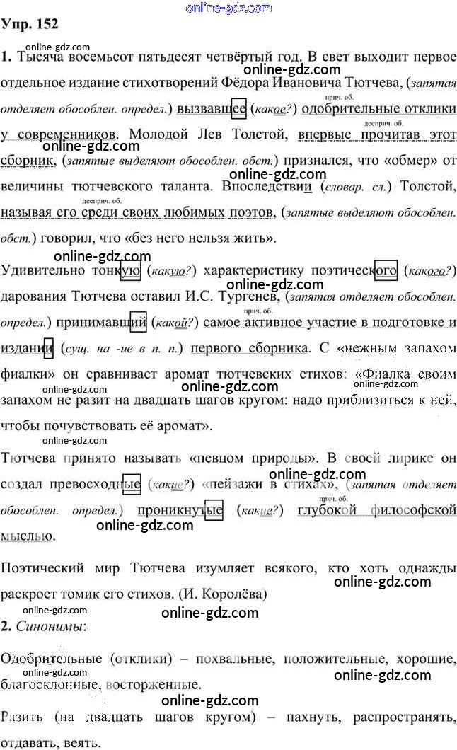 Готовые домашние задания по Русскому языку за 8 класс Учебник Быстрова, Кибирева Инновационная школа 2019 - Упражнения Часть 2 152