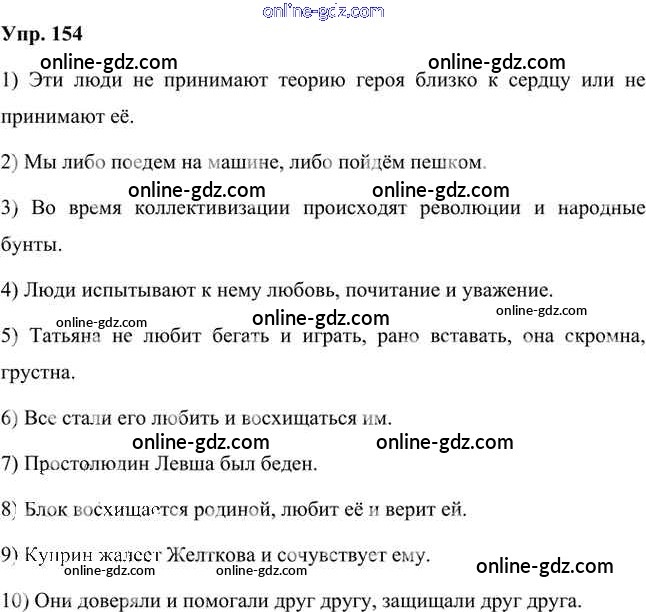 Готовые домашние задания по Русскому языку за 8 класс Учебник Быстрова, Кибирева Инновационная школа 2019 - Упражнения Часть 2 154