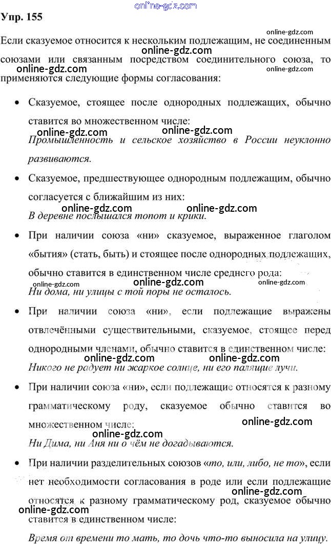 Готовые домашние задания по Русскому языку за 8 класс Учебник Быстрова, Кибирева Инновационная школа 2019 - Упражнения Часть 2 155