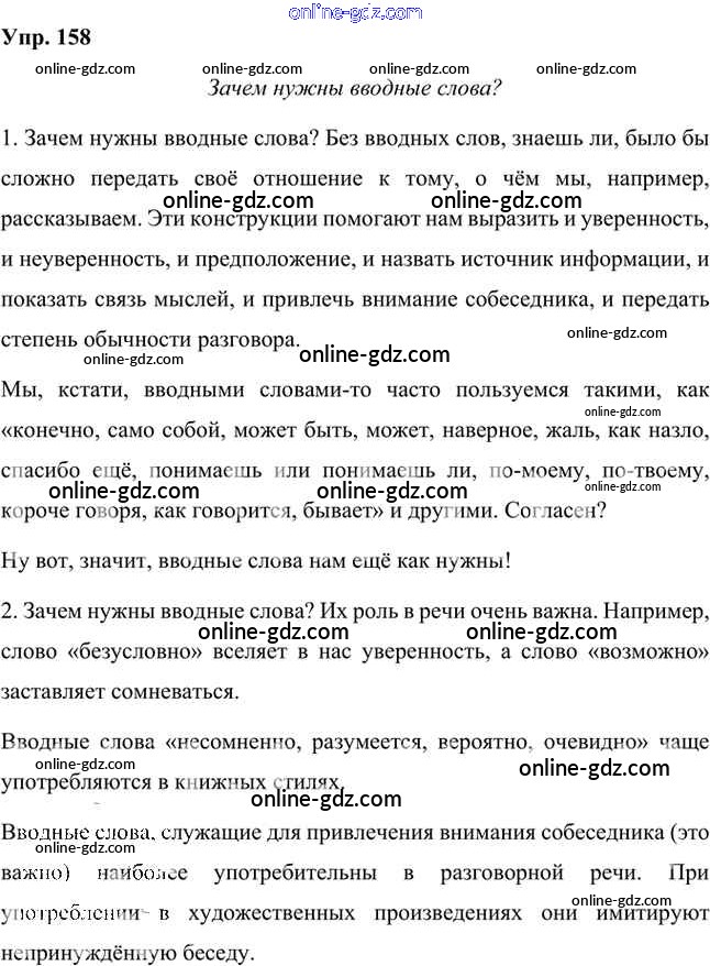 Готовые домашние задания по Русскому языку за 8 класс Учебник Быстрова, Кибирева Инновационная школа 2019 - Упражнения Часть 2 158