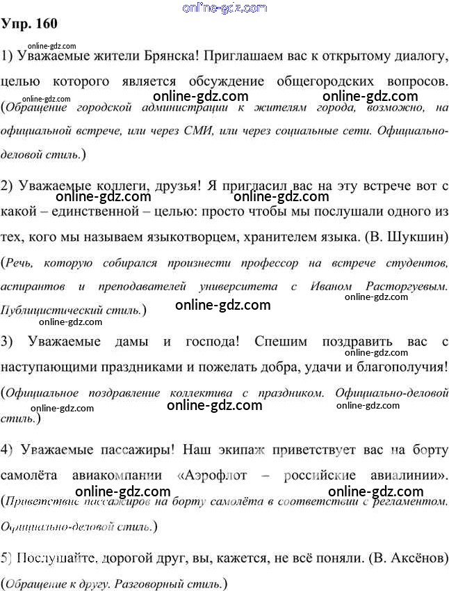 Готовые домашние задания по Русскому языку за 8 класс Учебник Быстрова, Кибирева Инновационная школа 2019 - Упражнения Часть 2 160