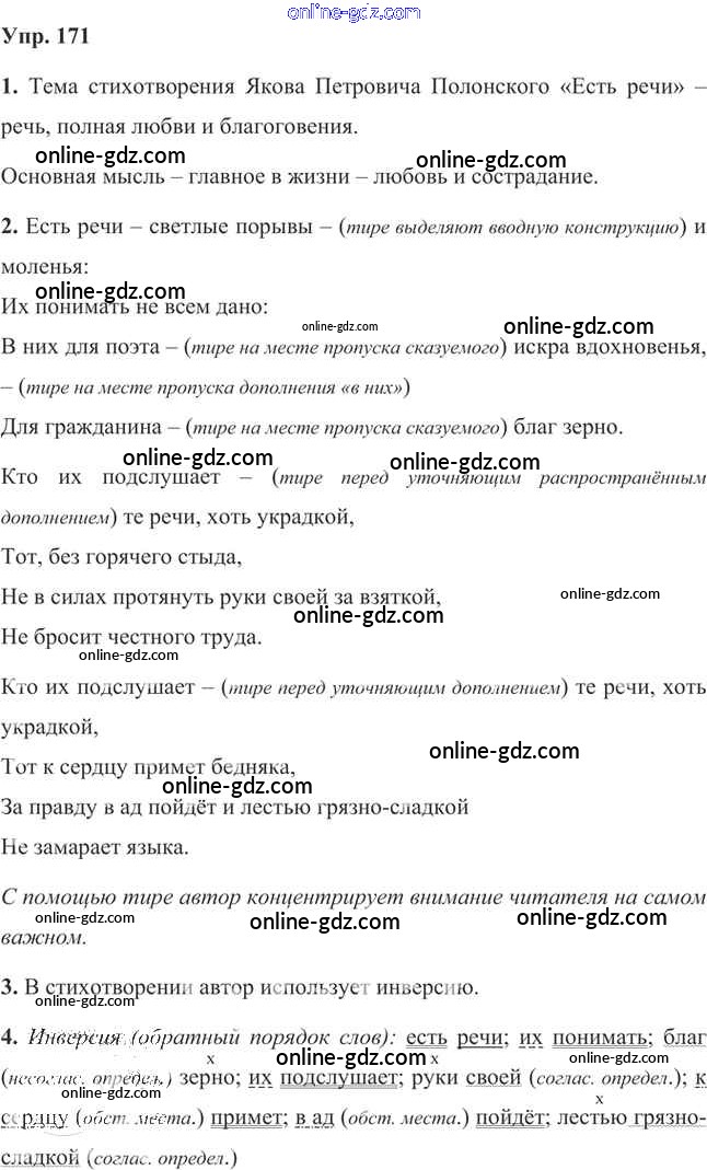 Готовые домашние задания по Русскому языку за 8 класс Учебник Быстрова, Кибирева Инновационная школа 2019 - Упражнения Часть 2 171