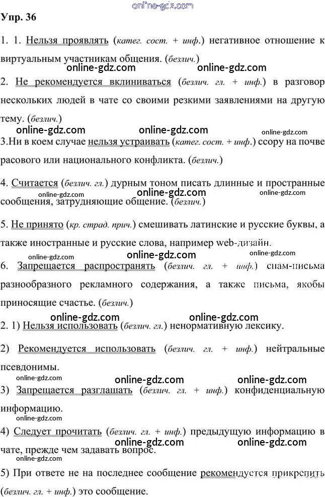 Готовые домашние задания по Русскому языку за 8 класс Учебник Быстрова, Кибирева Инновационная школа 2019 - Упражнения Часть 2 36