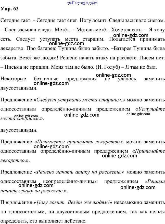 Готовые домашние задания по Русскому языку за 8 класс Учебник Быстрова, Кибирева Инновационная школа 2019 - Упражнения Часть 2 62