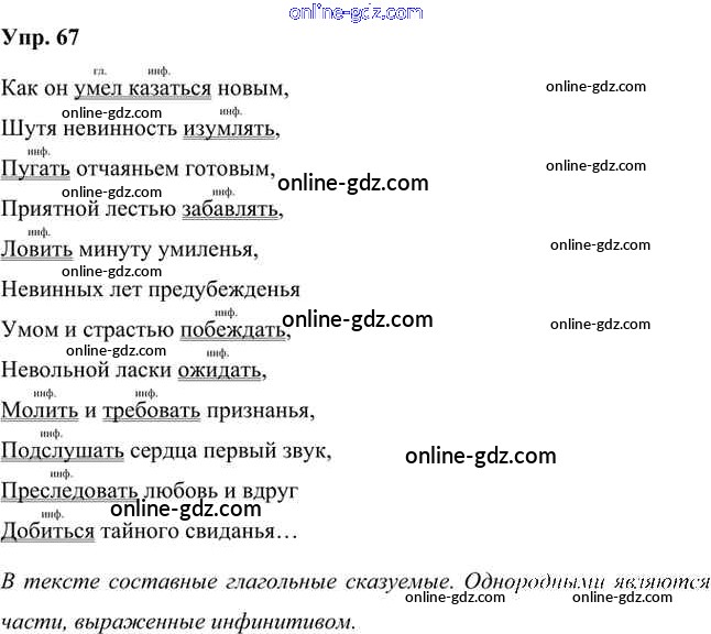 Готовые домашние задания по Русскому языку за 8 класс Учебник Быстрова, Кибирева Инновационная школа 2019 - Упражнения Часть 2 67