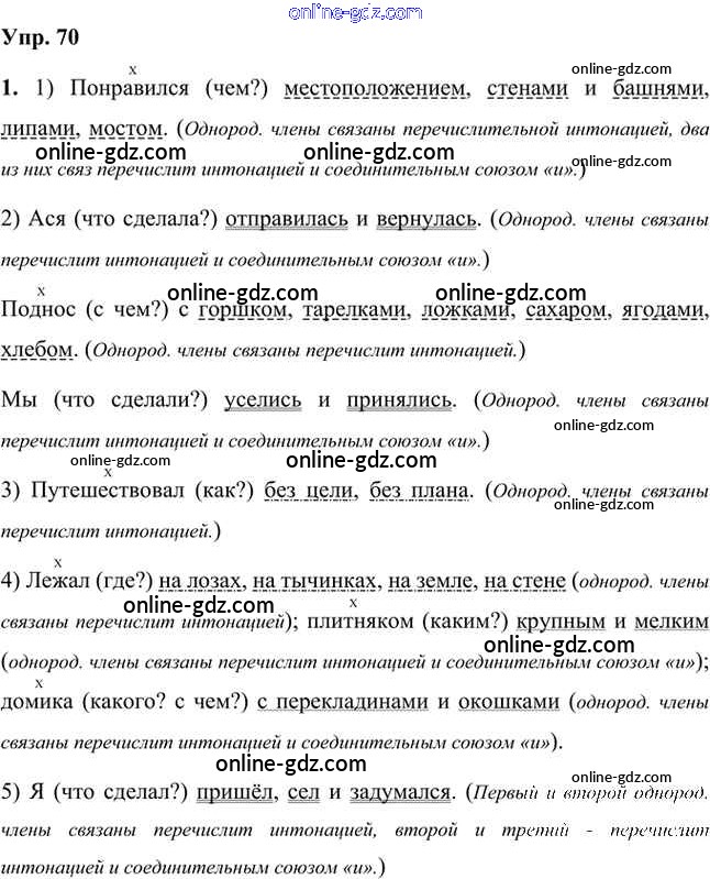 Готовые домашние задания по Русскому языку за 8 класс Учебник Быстрова, Кибирева Инновационная школа 2019 - Упражнения Часть 2 70
