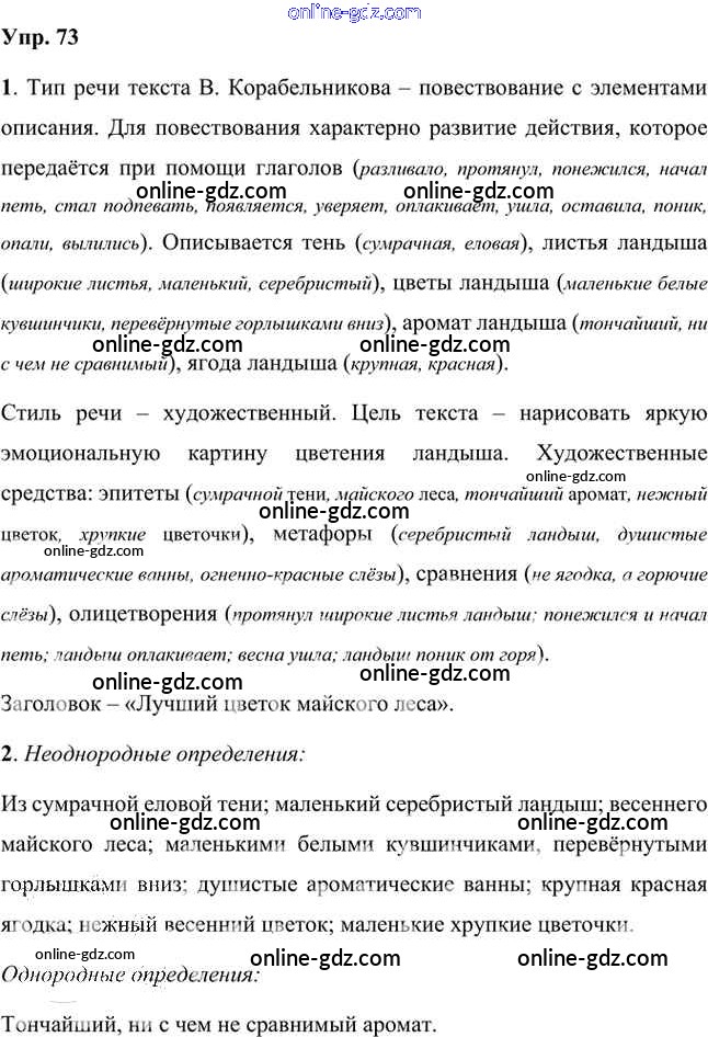 Готовые домашние задания по Русскому языку за 8 класс Учебник Быстрова, Кибирева Инновационная школа 2019 - Упражнения Часть 2 73