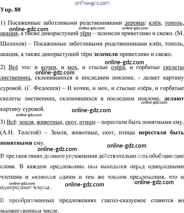 Готовые домашние задания по Русскому языку за 8 класс Учебник Быстрова, Кибирева Инновационная школа 2019 - Упражнения Часть 2 88