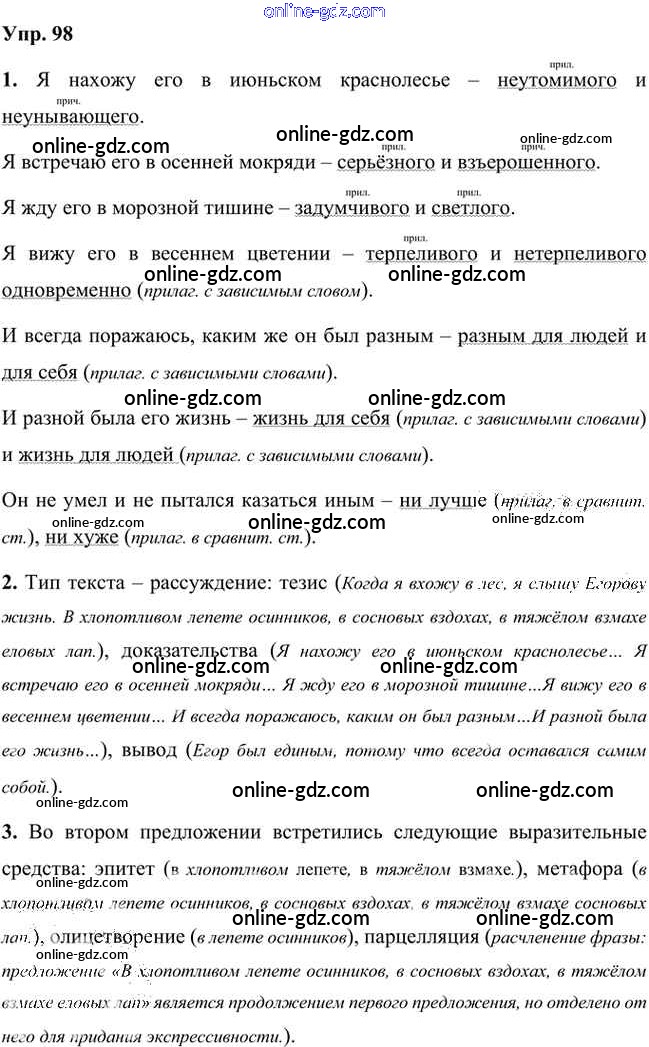 Готовые домашние задания по Русскому языку за 8 класс Учебник Быстрова, Кибирева Инновационная школа 2019 - Упражнения Часть 2 98