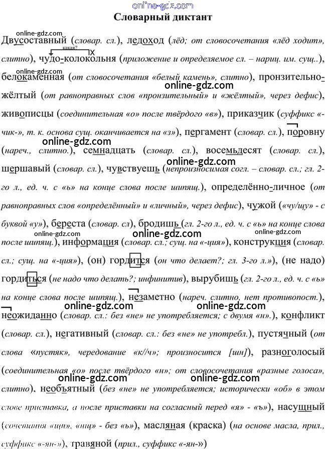 Готовые домашние задания по Русскому языку за 8 класс Учебник Быстрова, Кибирева Инновационная школа 2019 - Словарный диктант Часть 2 с.51