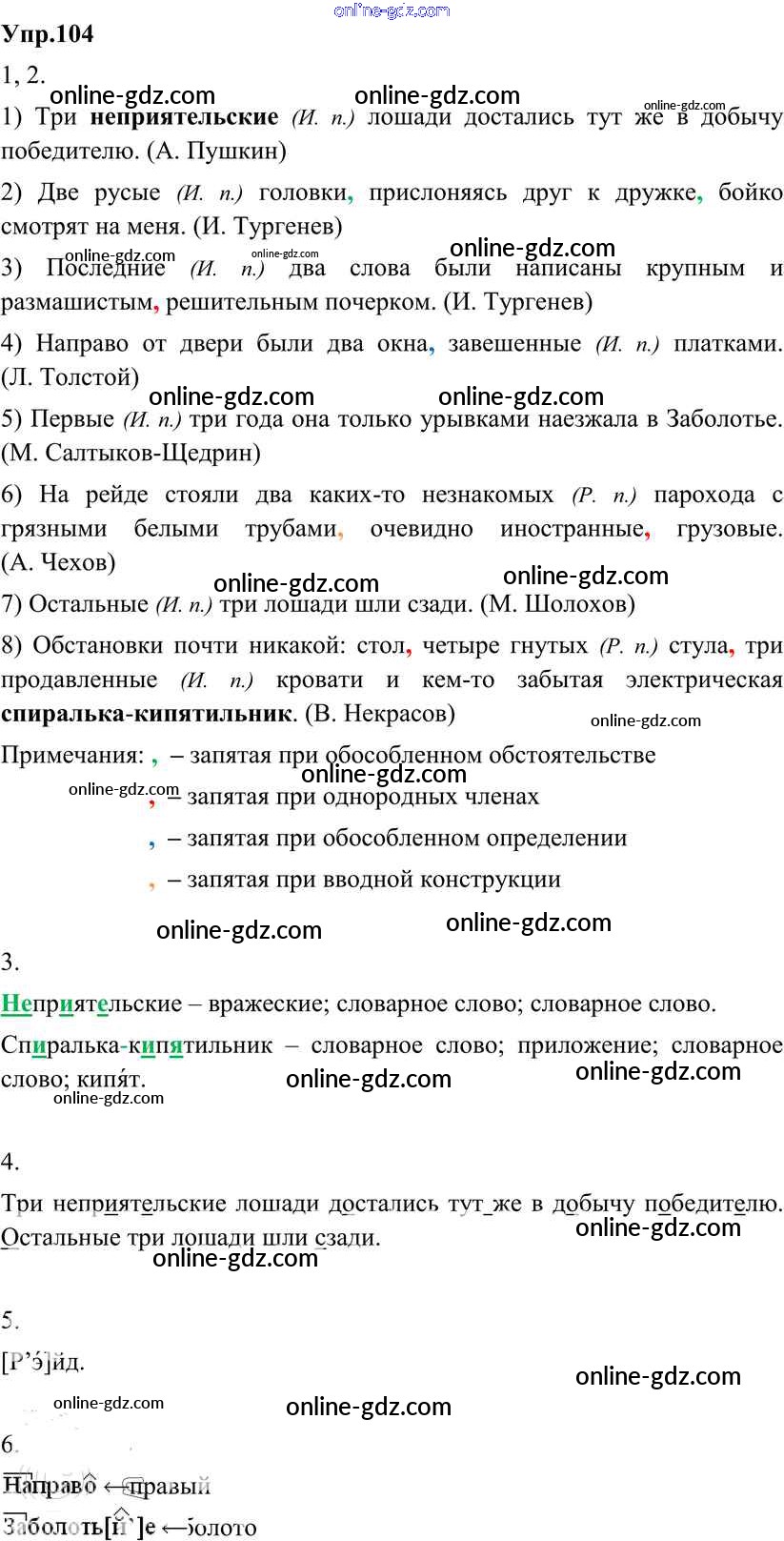 Готовые домашние задания по Русскому языку за 8 класс Учебник Разумовская, Львова Вертикаль 2013 - Упражнения 104