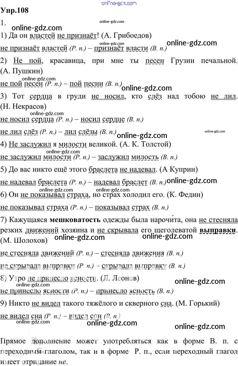 Готовые домашние задания по Русскому языку за 8 класс Учебник Разумовская, Львова Вертикаль 2013 - Упражнения 108