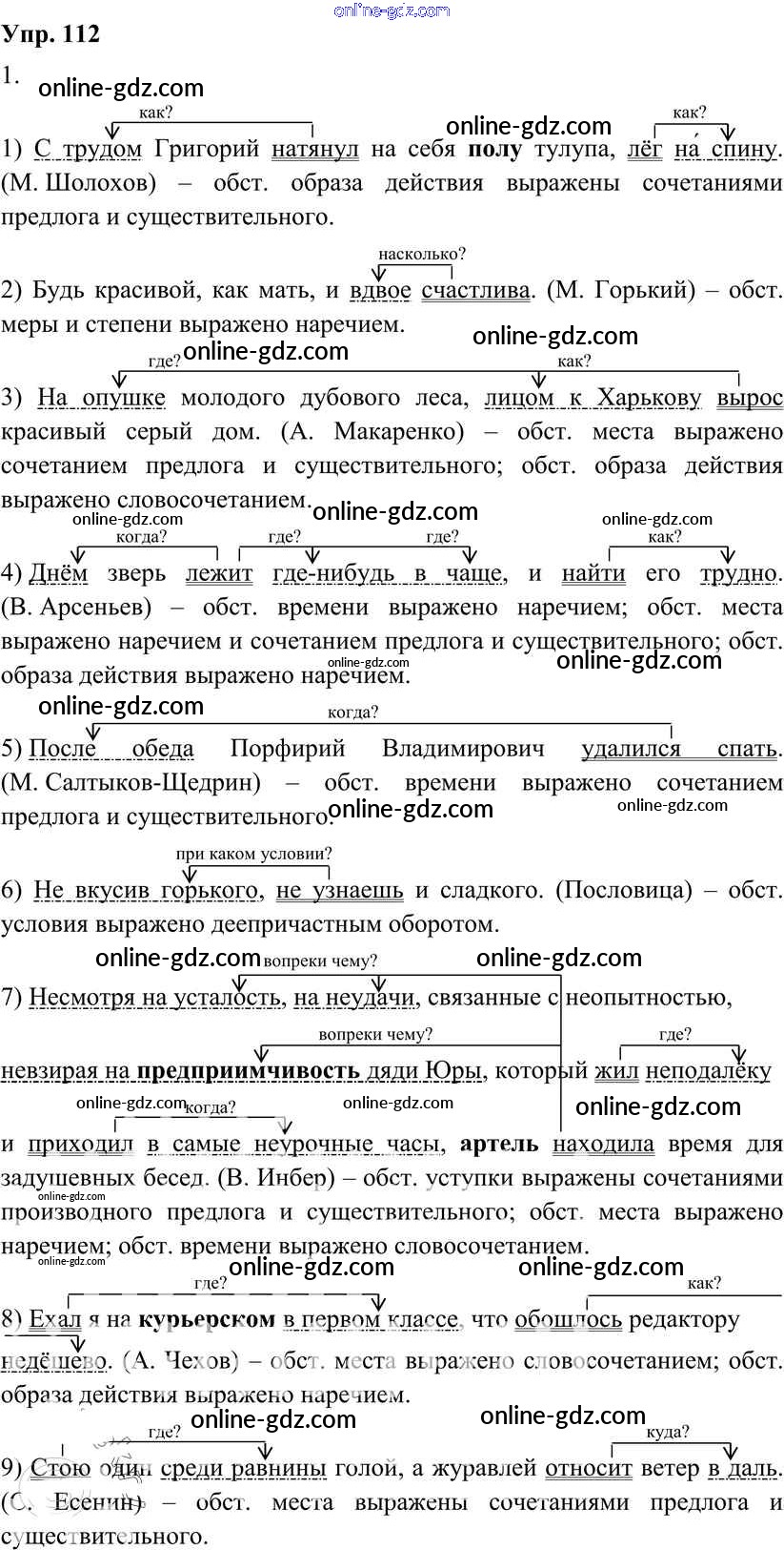 Готовые домашние задания по Русскому языку за 8 класс Учебник Разумовская, Львова Вертикаль 2013 - Упражнения 112
