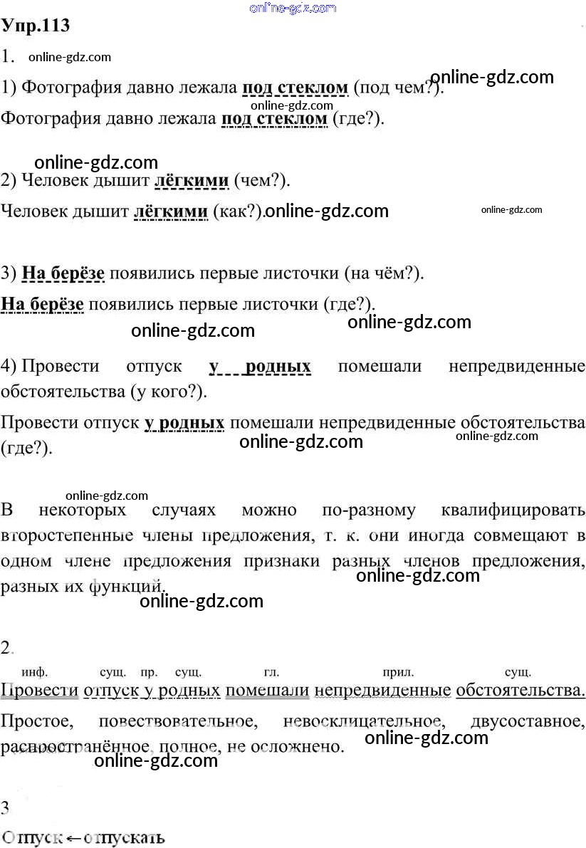 Готовые домашние задания по Русскому языку за 8 класс Учебник Разумовская, Львова Вертикаль 2013 - Упражнения 113