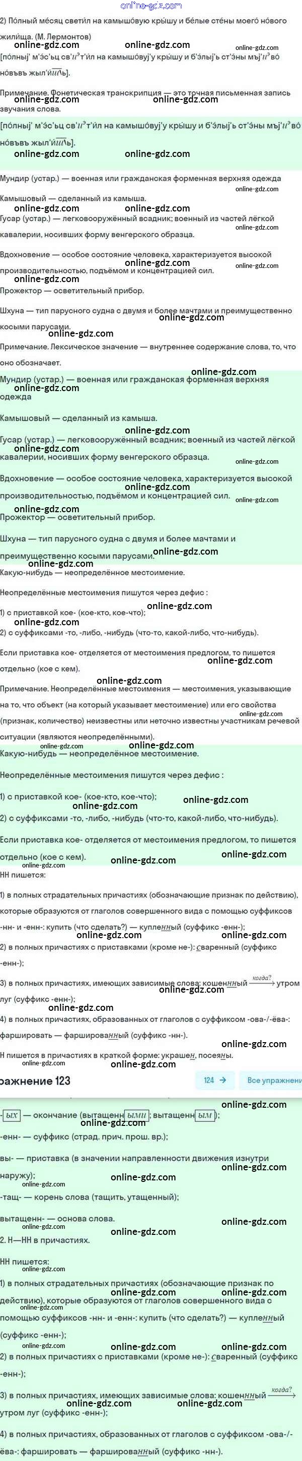 Готовые домашние задания по Русскому языку за 8 класс Учебник Разумовская, Львова Вертикаль 2015 - Упражнения 123