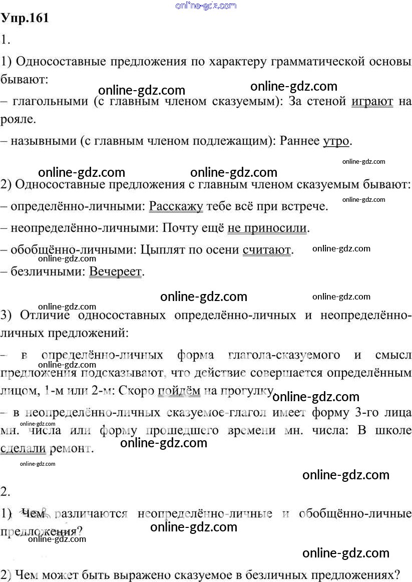Готовые домашние задания по Русскому языку за 8 класс Учебник Разумовская, Львова Вертикаль 2013 - Упражнения 161