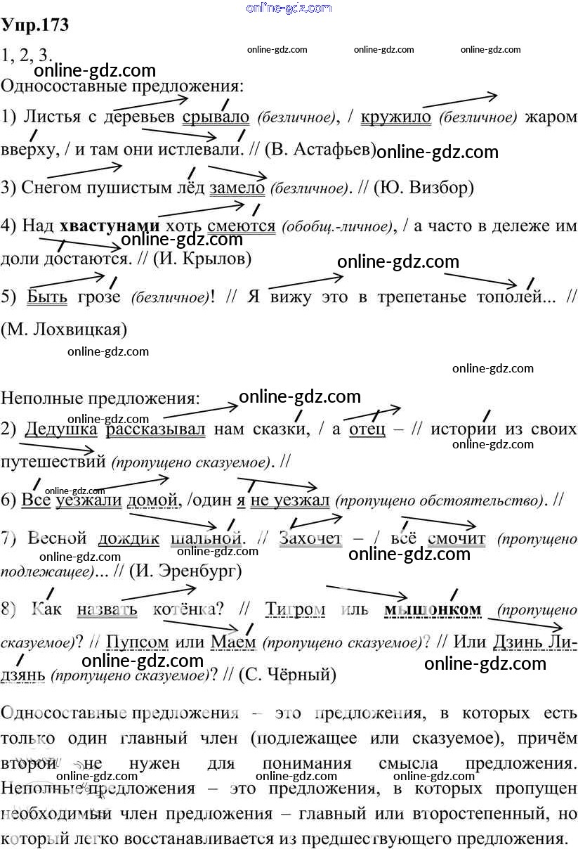 Готовые домашние задания по Русскому языку за 8 класс Учебник Разумовская, Львова Вертикаль 2013 - Упражнения 173