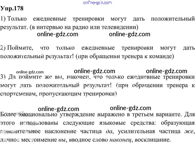 Готовые домашние задания по Русскому языку за 8 класс Учебник Разумовская, Львова Вертикаль 2013 - Упражнения 178