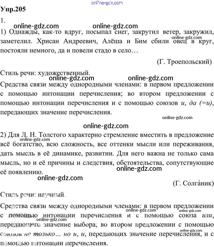Готовые домашние задания по Русскому языку за 8 класс Учебник Разумовская, Львова Вертикаль 2013 - Упражнения 205