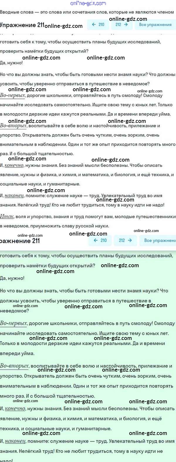 Готовые домашние задания по Русскому языку за 8 класс Учебник Разумовская, Львова Вертикаль 2015 - Упражнения 211