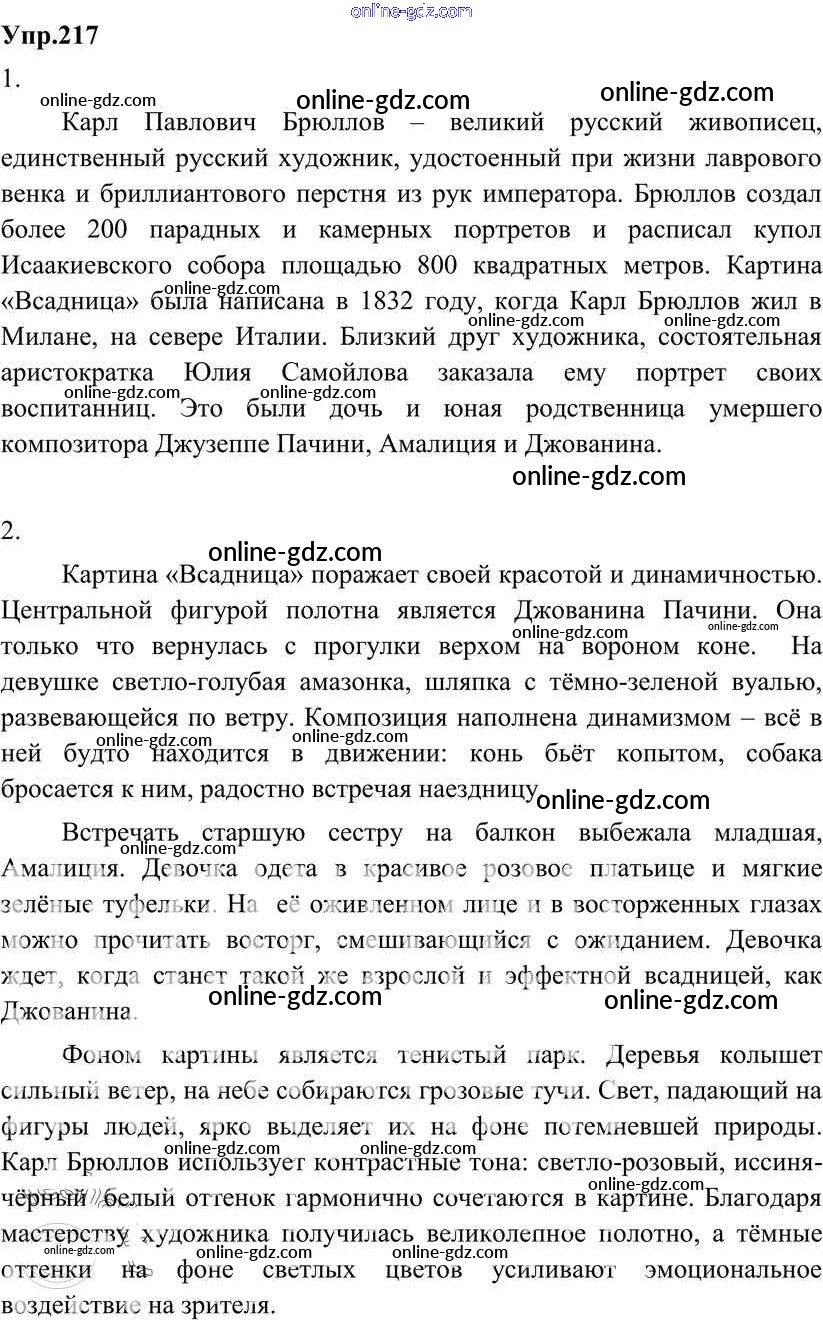 Готовые домашние задания по Русскому языку за 8 класс Учебник Разумовская, Львова Вертикаль 2013 - Упражнения 217