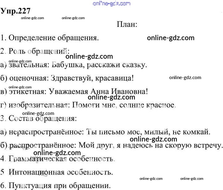 Готовые домашние задания по Русскому языку за 8 класс Учебник Разумовская, Львова Вертикаль 2013 - Упражнения 227