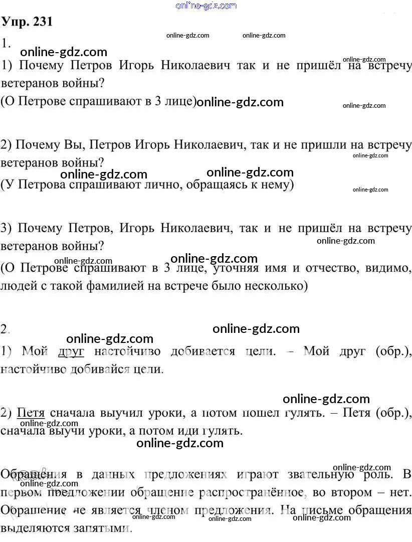 Готовые домашние задания по Русскому языку за 8 класс Учебник Разумовская, Львова Вертикаль 2013 - Упражнения 231