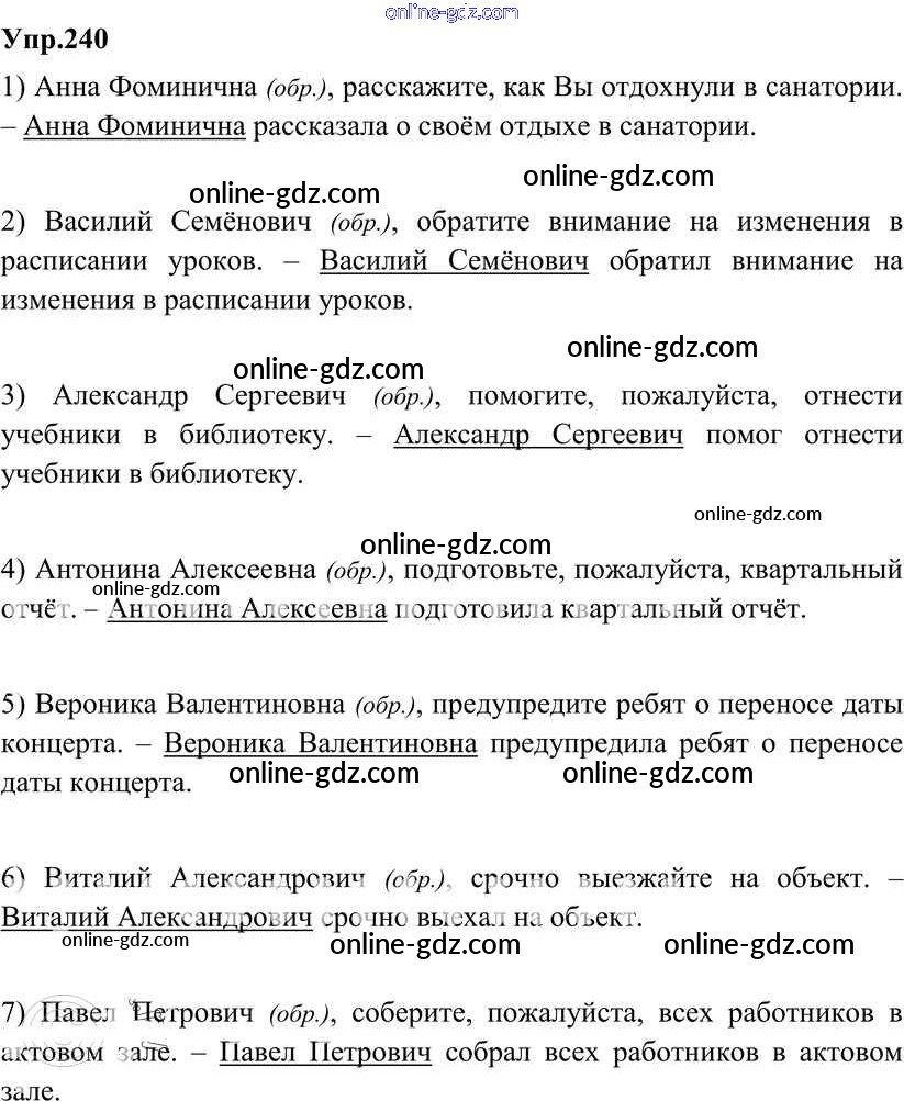 Готовые домашние задания по Русскому языку за 8 класс Учебник Разумовская, Львова Вертикаль 2013 - Упражнения 240